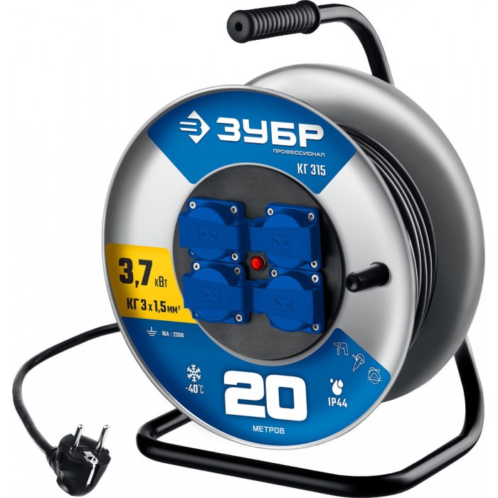 - Катушка позволяет легко сматывать и разматывать кабель, обеспечивая мобильное перемещение и компактное хранение.