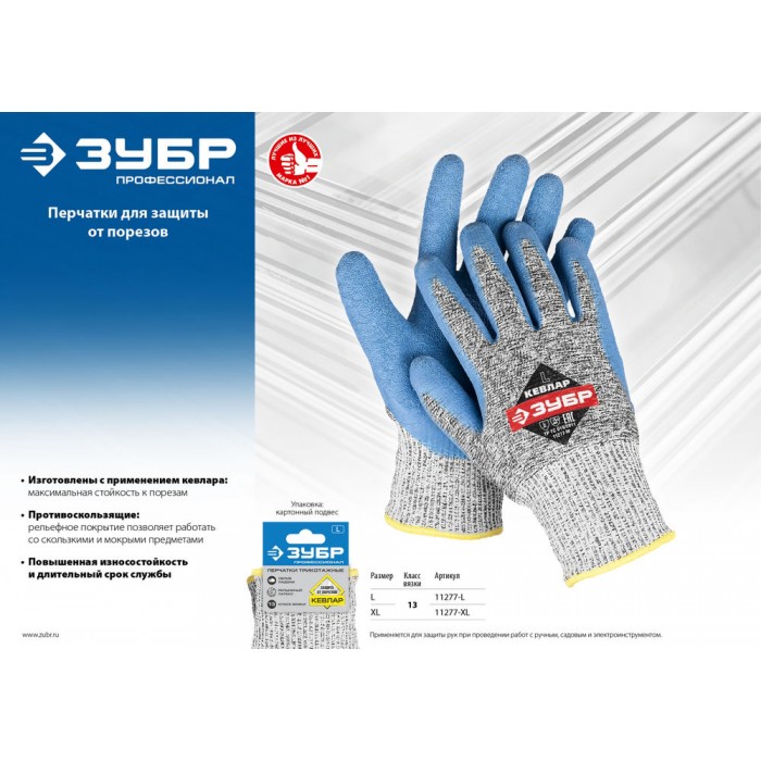 Перчатки ″ЗУБР″ предназначены для работ со стеклом, абразивами, колющими и режущими материалами.