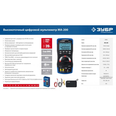 Профессиональный автоматический цифровой мультиметр ЗУБР гарантирует высокую точность измерений. Применение высококачественных материалов обеспечивает длительный срок службы.
