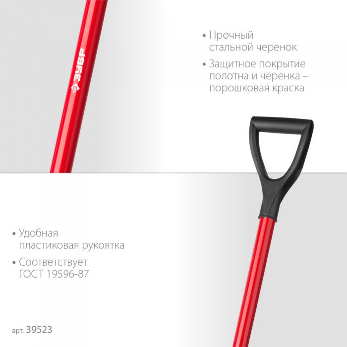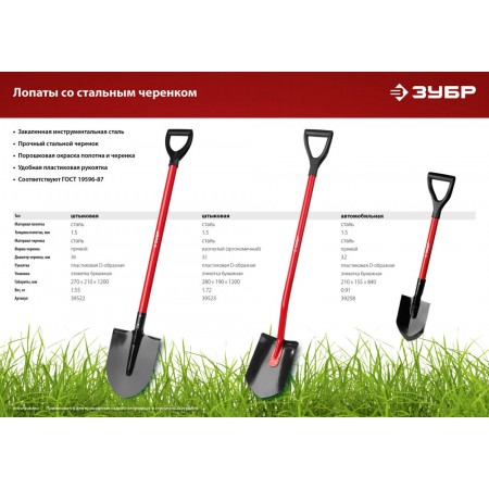 Штыковая лопата 280 х 190 х 1200 мм полотно 1.5 мм закалено стальной изогнутый черенок с рукояткой ЗУБР МАСТЕР 39523