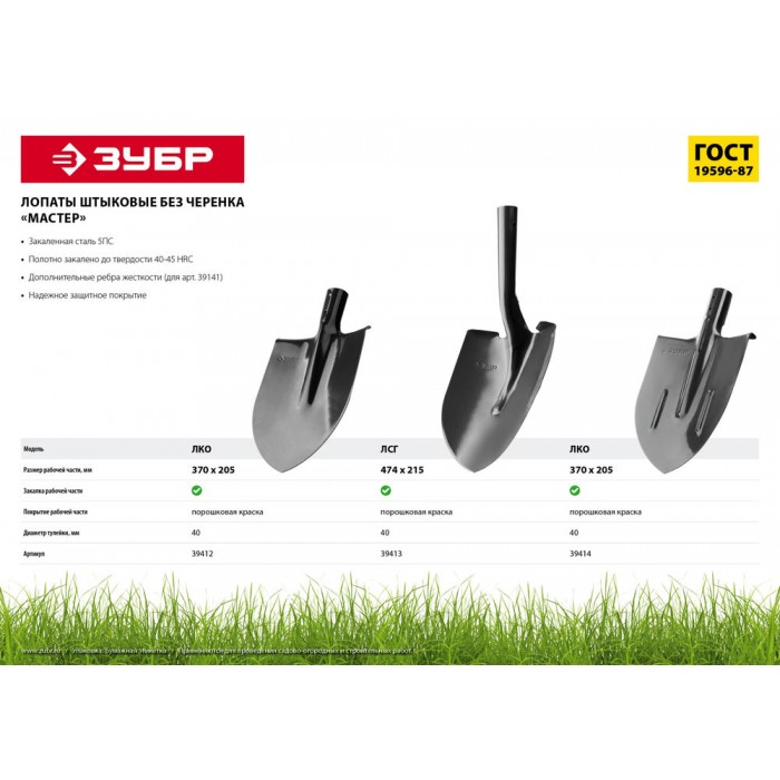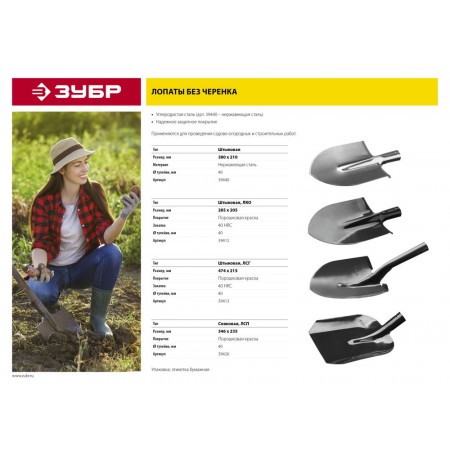 Штыковая лопата 474 х 215 мм полотно 1.6 мм закалено без черенка тип ЛСГ ЗУБР Мастер 39413
