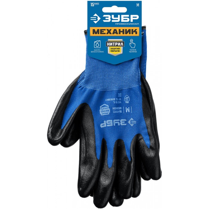 Перчатки МЕХАНИК, M (8), с нитриловым покрытием, маслобензостойкие, 15 класс ЗУБР Профессионал 11276-M_z01