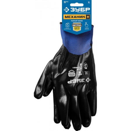 Перчатки МЕХАНИК+, XL (10), с полным нитриловым обливом, маслобензостойкие, 15 класс ЗУБР Профессионал 11279-XL