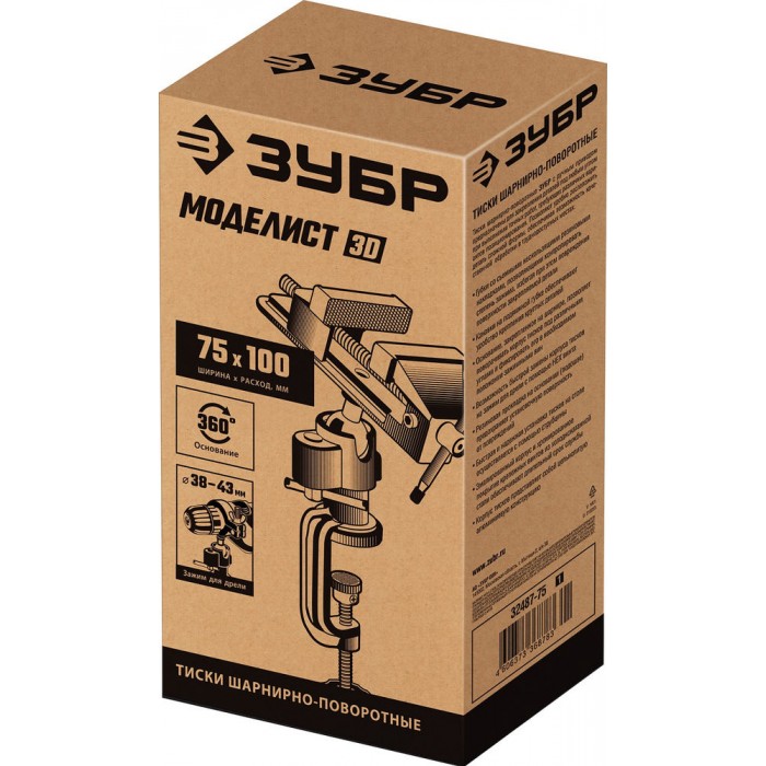 Тиски шарнирно-поворотные Моделист, 75 мм ЗУБР 32487-75_z01