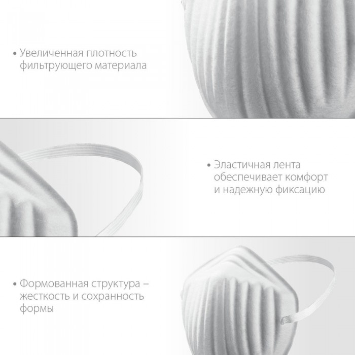 Формованная структура маски обеспечивает жёсткость и сохранность формы при ношении
