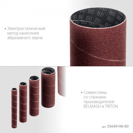 Набор втулок шлифовальных для станка СШО-500 МАСТЕР 6 шт: 13; 19; 26; 38; 51; 76 мм высота 115 мм Р80 ЗУБР 35649-H6-80