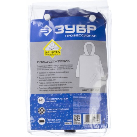 Плащ-дождевик нейлоновый, синий, размер S-XL ЗУБР Профессионал 11615