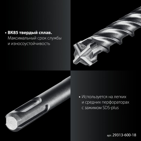 Бур SDS-plus 18 х 600 мм ПРОФИ-4Х ЗУБР 29313-600-18