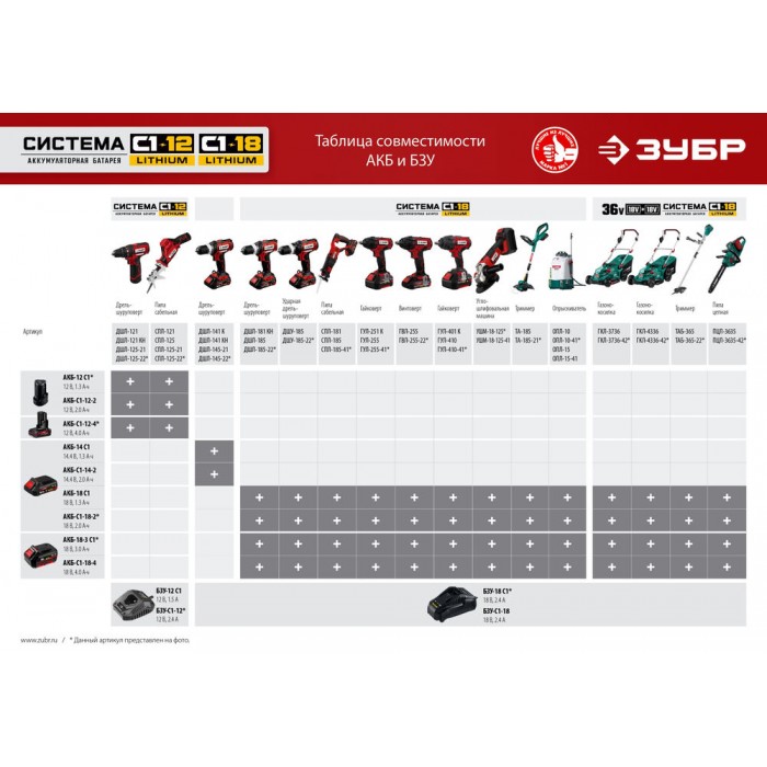 Литий-ионная технология ЗУБР нового поколения: - увеличение производительности на 35%, - электронная система защиты от перегрузки, перегрева и глубокой разрядки, - отсутствие эффекта памяти, - отсутствие потери мощности в процессе работы