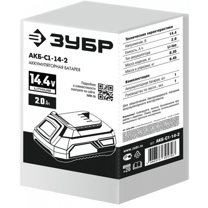 Аккумуляторная батарея 14.4 В 2.0 А·ч ЗУБР С1 АКБ-С1-14-2
