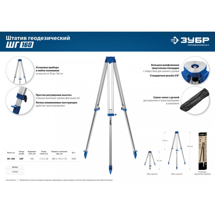 Профессиональный инструмент для работы с лазерным, оптическим, измерительным инструментом. Выполнен из алюминиевого сплава, благодаря чему имеет прочную конструкцию и оптимальный вес. Прибор можно точно установить на нужной высоте при помощи раздвижных ножек. Благодаря специальной конструкции ножек имеет