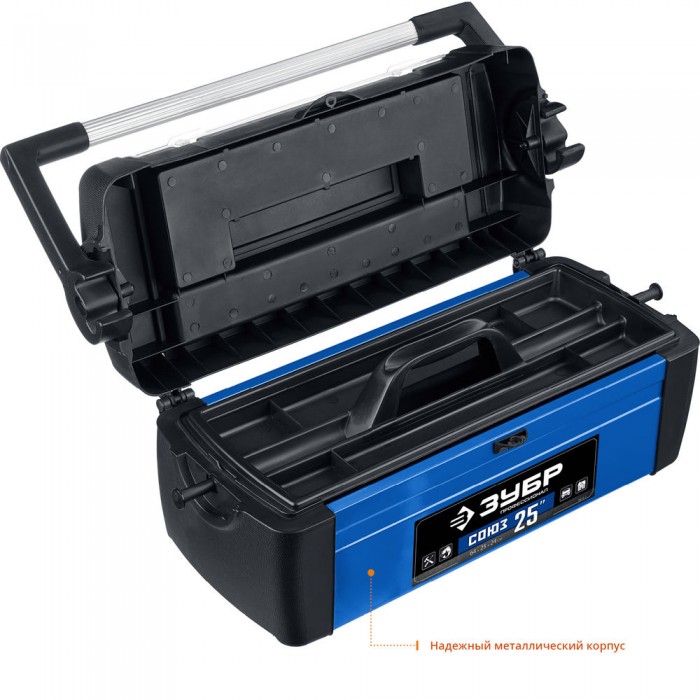Металлический ящик для инструментов 640 x 250 x 240 мм 25" Профессионал ЗУБР СОЮЗ-25 38151-25