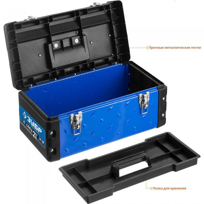 Металлический ящик для инструментов 530 x 270 x 240 мм 21" Профессионал ЗУБР СПЕЦ-21 38155-21