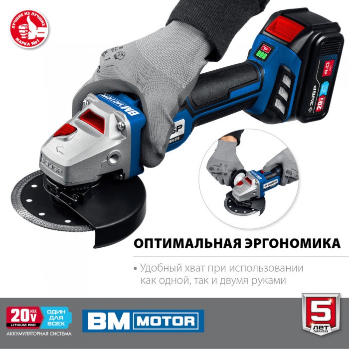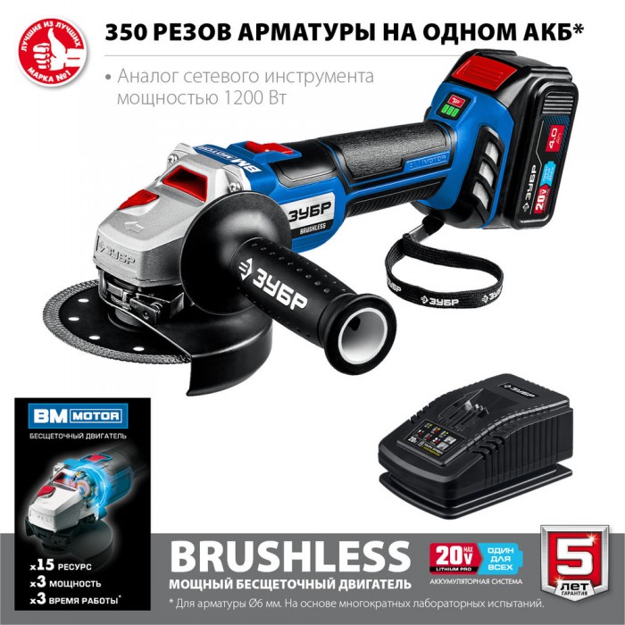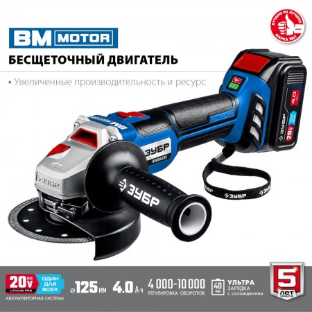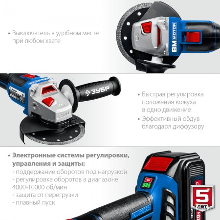 Высокотехнологичная замена сетевой УШМ мощностью до 1200 Вт. Мощная батарея емкостью 4 Ач и быстрая зарядка током 6А уменьшают простои. При меньшем, чем у сетевого аналога, весе данная модель обладает максимальной мобильностью, гораздо более удобной эргономикой, имеет все вспомогательные и защитные системы. Что в совокупности с бесщеточным двигателем с длительным ресурсом делает данную модель гораздо более выгодным выбором к приобретению