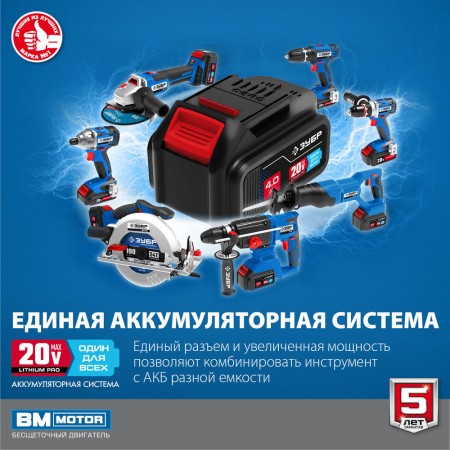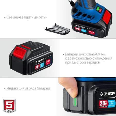 - отсутствие потери мощности в процессе работы - Батарея большой емкости 4 Ач в комплекте для эффективной работы