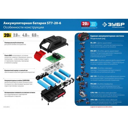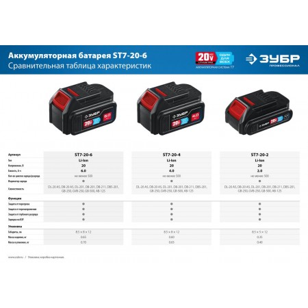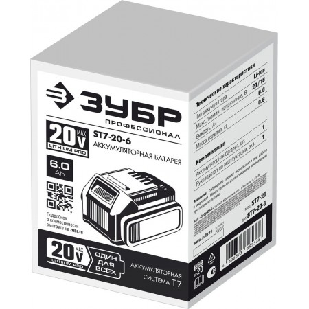 Аккумуляторная батарея 20 В 6.0 А·ч T7 ЗУБР ST7-20-6
