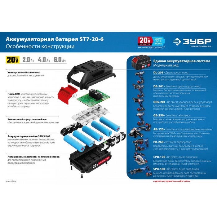 Источник питания для шуруповерта ЗУБР с увеличенной емкостью позволит Вам работать еще дольше и производительнее. Современные Li-Ion элементы профессиональной серии гарантируют превосходные технические характеристики, надежность и результат