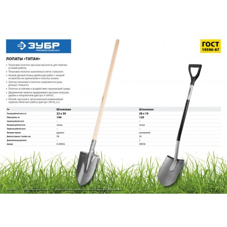 Штыковая лопата тип ЛКО 280 х 190 х 1200 мм полотно 2 мм титановая алюминиевый изогнутый черенок с рукояткой Профессионал ЗУБР Титан 39418