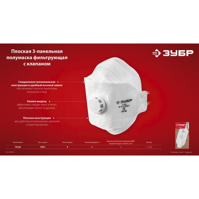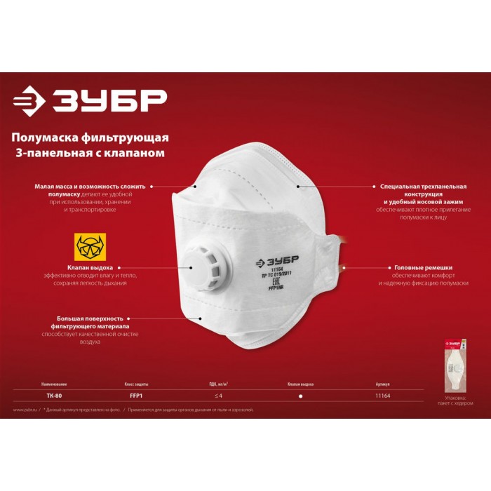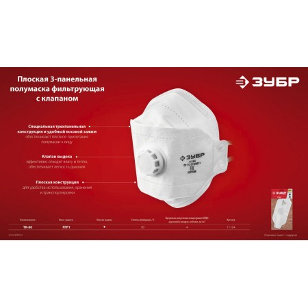 - Специальная трёхпанельная конструкция и удобный носовой зажим обеспечивают плотное прилегание полумаски к лицу