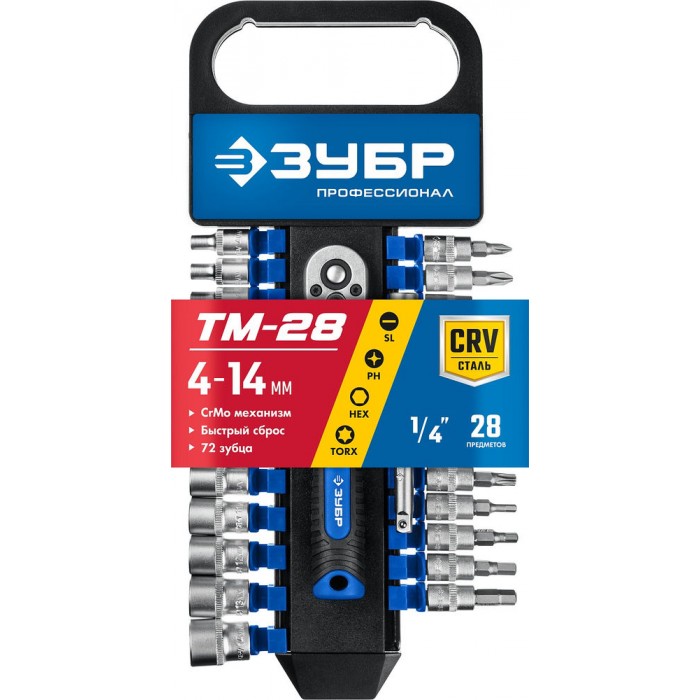 Набор торцовых головок 28 предм. 1/4" Профессионал ЗУБР ТМ-28 27645-H28